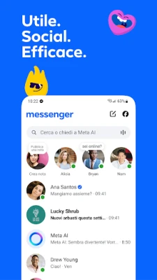 Messenger trasforma la comunicazione quotidiana in un'esperienza ricca e senza sforzo. Connettiti istantaneamente con amici e familiari da Facebook, senza il bisogno di un numero di telefono, e goditi la libertà di chiamate cristalline e chat vivaci ovunque tu sia. È il tuo ponte digitale per mantenere vivi i legami, rendendo ogni interazione fluida e significativa, un tocco alla volta.