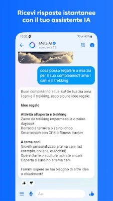 Alza il livello delle tue conversazioni con strumenti avanzati e intelligenti. Meta AI è il tuo assistente personale sempre pronto a rispondere a domande, offrire consigli o a sprigionare la tua immaginazione per creare e modificare immagini uniche. Immortalare i ricordi non è mai stato così chiaro: condividi foto in alta definizione e organizza album collaborativi per rivivere i momenti più belli con i tuoi gruppi. Inoltre, invia facilmente file di grandi dimensioni, dai documenti di lavoro ai PDF, e gestisci i tuoi messaggi con precisione, potendo modificarli o annullarne l'invio, o garantendo la massima discrezione con chat temporanee.