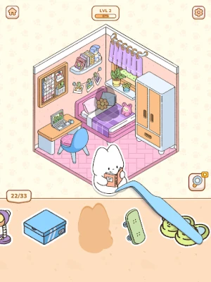 Il cuore dell'esperienza in My Sticker Room risiede nella sua meccanica intuitiva: seleziona un adesivo, posizionalo nel punto desiderato e osserva come ogni ambiente prende forma sotto le tue dita. Che tu voglia arredare un caffè per gattini sornioni o un salotto per coniglietti giocherelloni, ogni livello offre una tela bianca per la tua immaginazione. È un passatempo perfetto per ogni età e abilità, progettato per infondere calma grazie alle sue animazioni fluide e al gameplay senza fretta. Dimentica la complessità e abbraccia la semplicità del decorare e del costruire.