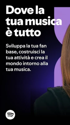 Spotify ti supporta, artista, nel far crescere la tua fan base. Trasforma la tua passione in un'attività di successo e costruisci un universo unico intorno alla tua musica con gli strumenti ufficiali di Spotify. Dedicato a chi crea.