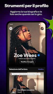 Per ogni musicista, band o team che ambisce a lasciare il proprio segno, Spotify for Artists rappresenta lo strumento definitivo. Progettata per trasformare l'approccio alla gestione della propria carriera musicale, questa applicazione offre un ecosistema completo di funzionalità pensate per massimizzare la tua presenza su Spotify. Che tu sia in studio a registrare, on the road per un tour o semplicemente a pianificare la tua prossima mossa artistica, avrai sempre a portata di mano gli strumenti per comprendere il tuo pubblico, curare la tua immagine e amplificare la tua arte.