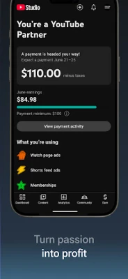 Con l'app ufficiale YouTube Studio, analizza le performance dei tuoi contenuti e scopri gli interessi della tua community. Interagisci facilmente con il tuo pubblico ovunque tu sia, gestendo il tuo canale direttamente dal tuo dispositivo mobile.